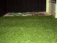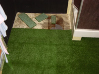 Une cliente a posé du gazon CITY dans un petit cabinet de toilette, au sol dégradé,dans un appartemet de ville . |