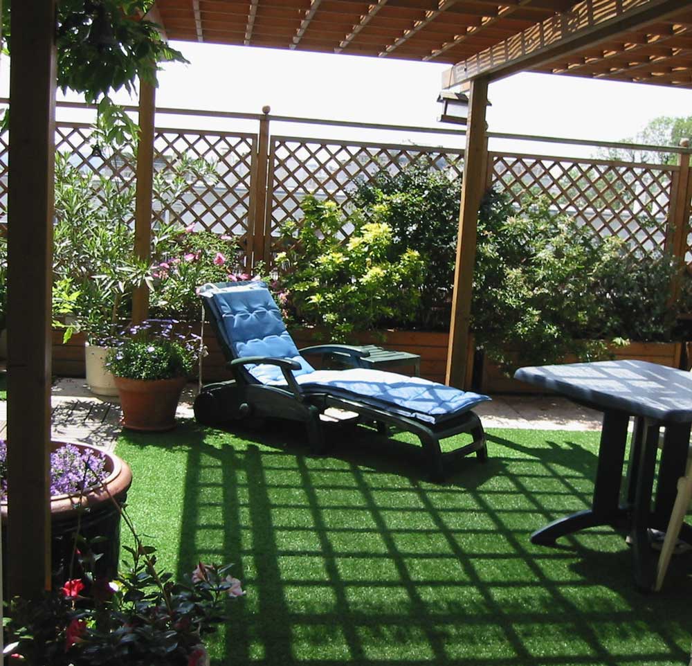 Les photos suivantes vous donnent l'aspect de cette grande terrasse d'appartement APRES la pose du gazon synthetique City |